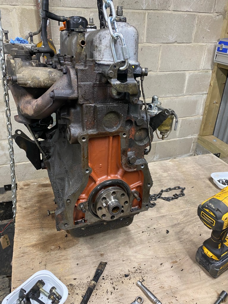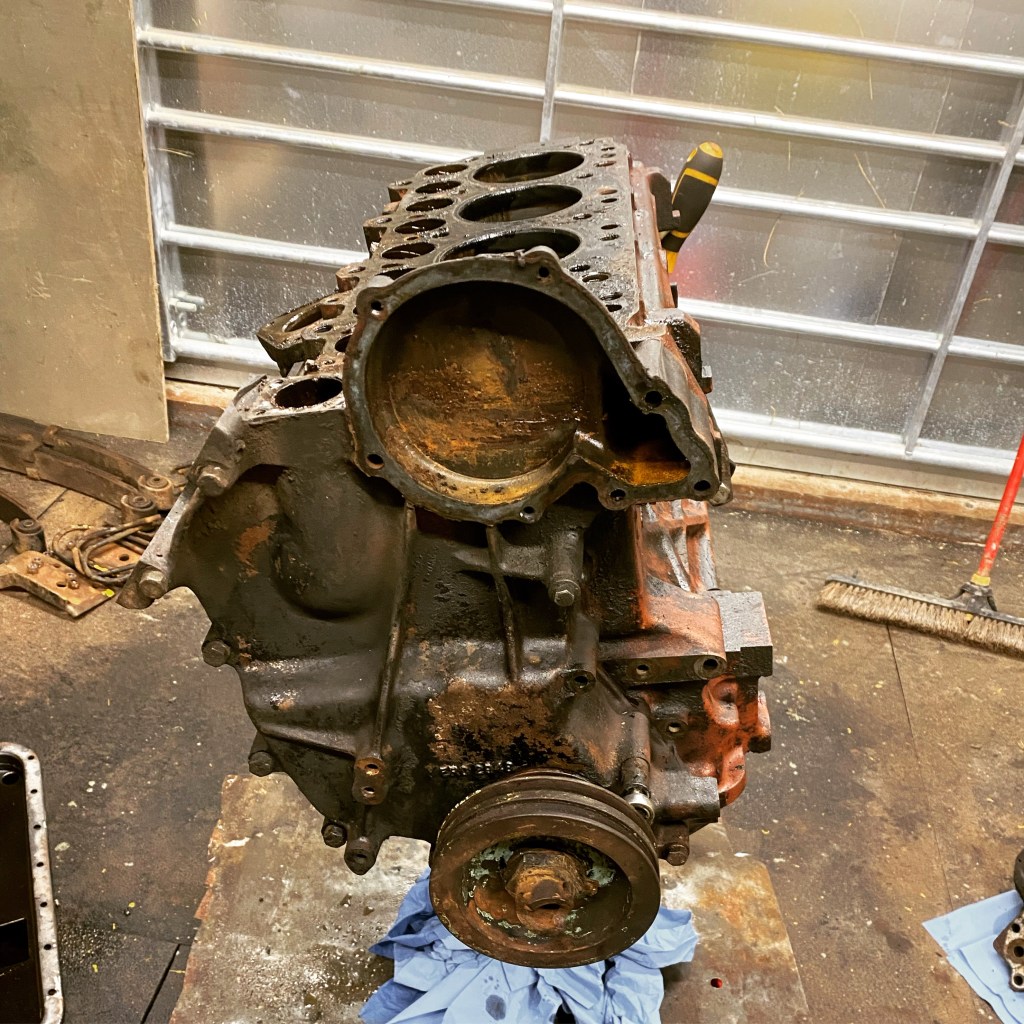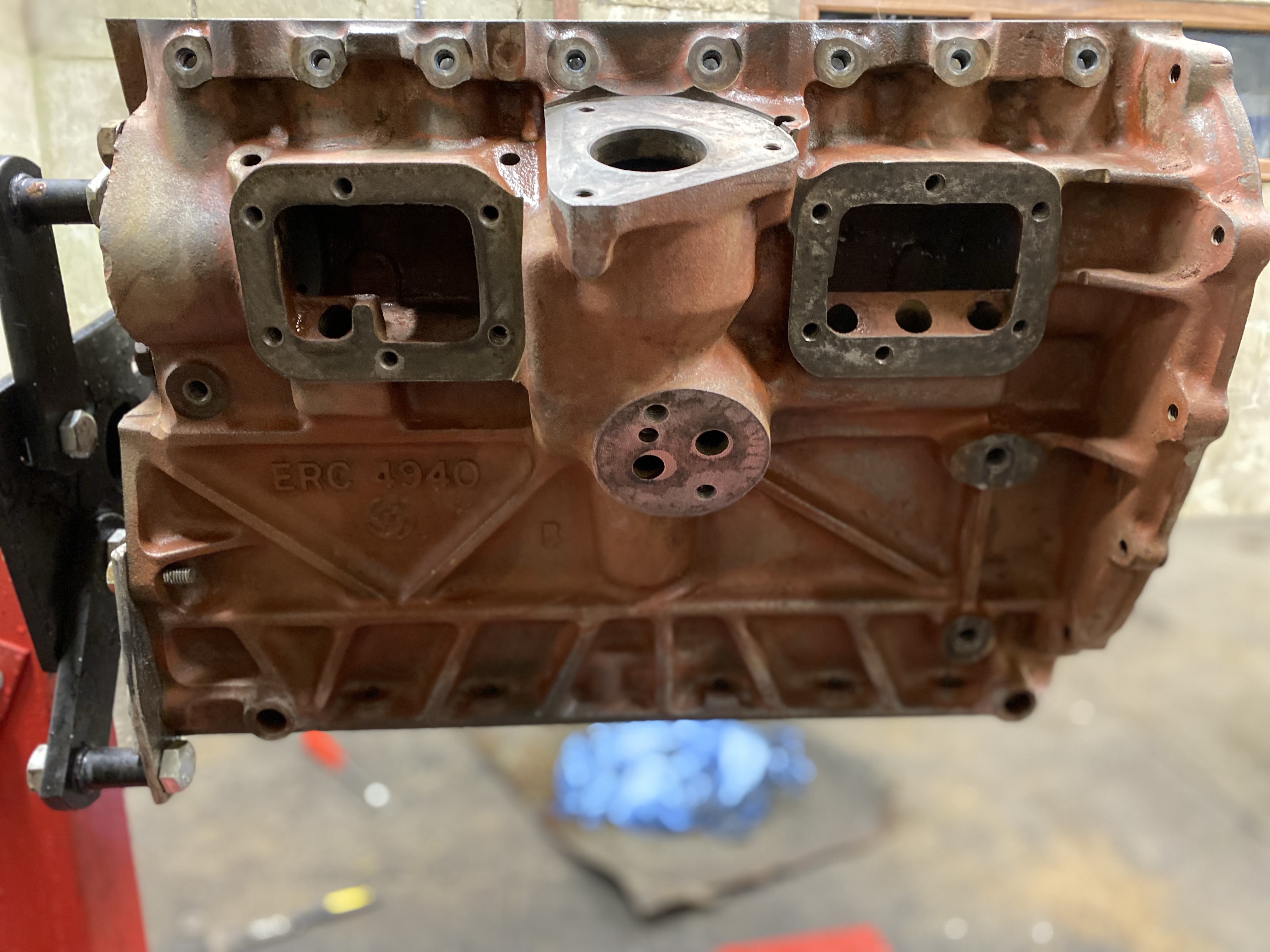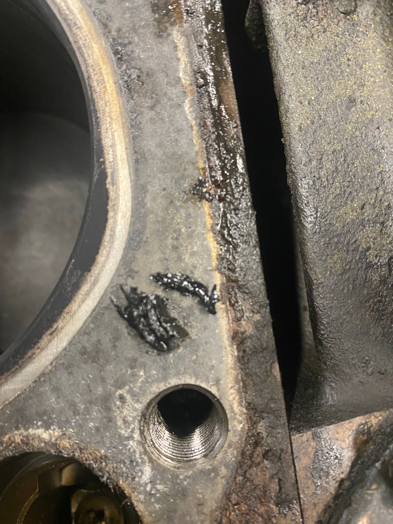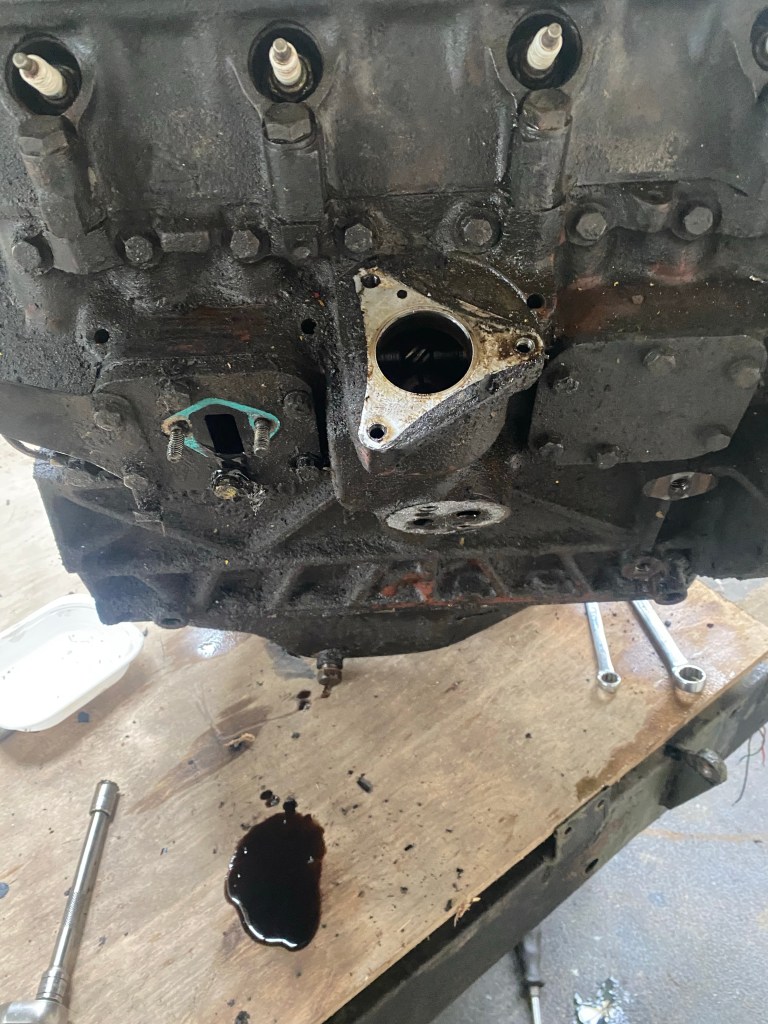 Gaskets removed I set to the outside and inside of the block with engine degreaser and a brush. This cleared most of the collected oil, but a jet wash removed the rest. It’ll need prep cleaner before painting but it is pretty clean. I also took the chance to blast through the coolant galleries. It may be better to have done this with core plugs removed, but I am still in two minds about replacing them. If it ain’t broke don’t fix it said the man who had to pull the engine again.