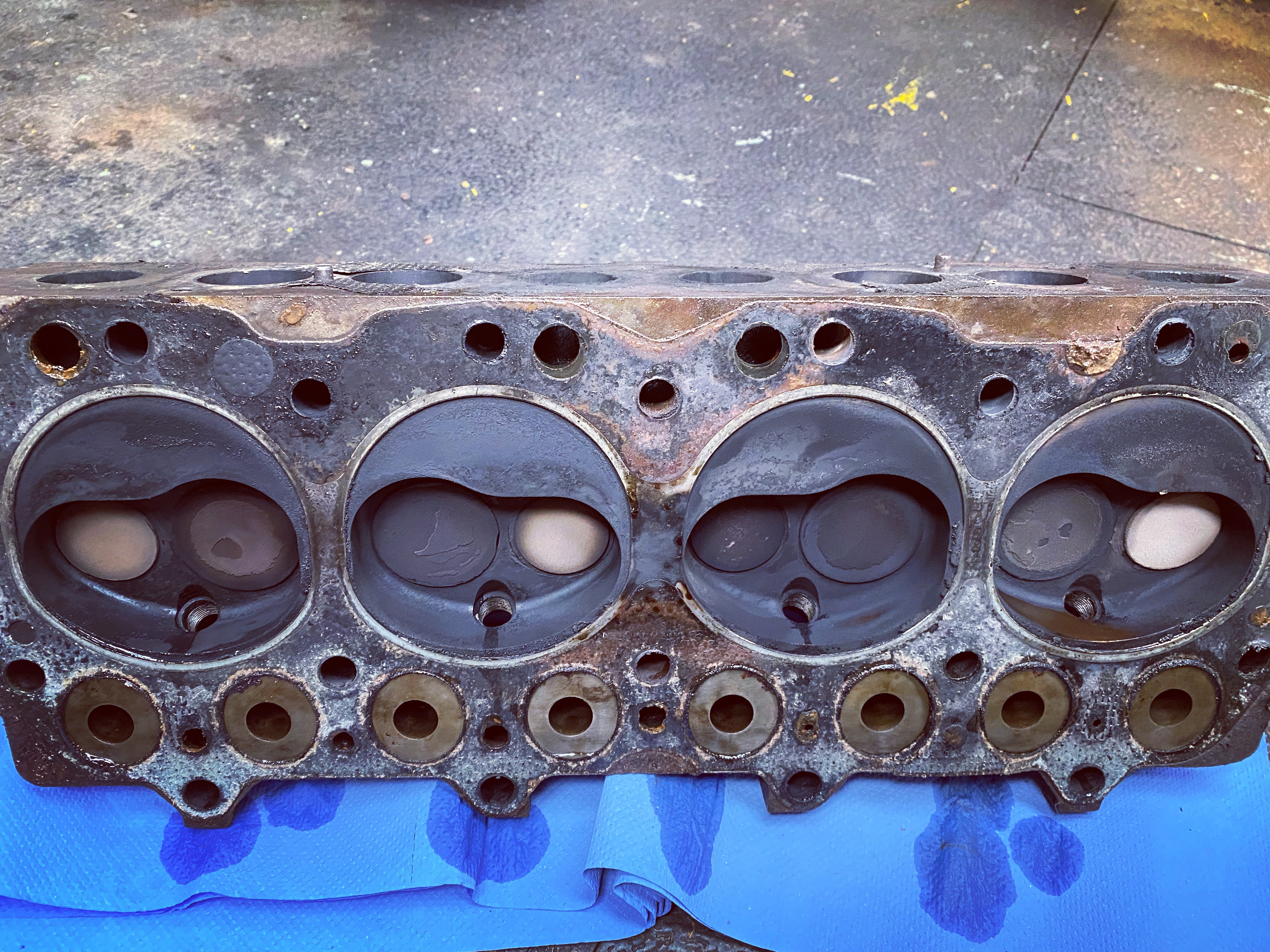 Over to the head and pistons. I thought whilst I was cleaning the block I would go lean the faces of the head and remove the carbon from the valves and pistons.