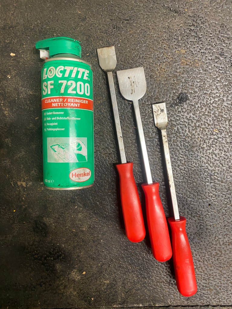 Armed with my scrapers and gasket removal spray, I attacked the gaskets, scrape, spray, leave, spray, scrape etc etc. The Loctite is actually pretty good but best to remove as much as possible first. It also softens carbon deposits – more on that later.